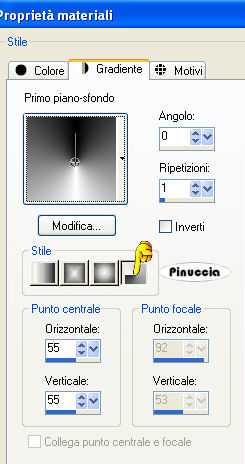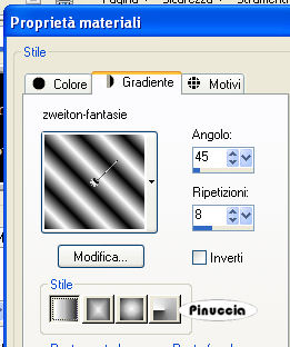 Passa il colore di primo piano a Gradiente e seleziona il gradiente zweiton-fantasie con i seguenti settaggi.