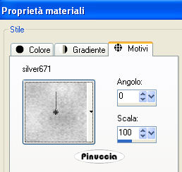 Apri il resto del materiale in PSP, compreso il motivo argento e il font che, minimizzati, troverai nella lista dei motivi e dei font disponibili quando ti serviranno.