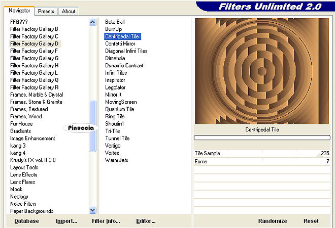 Effetti>Plugins>Filters unlimited - Filter Factory Gallery D - Centripedal Tile.