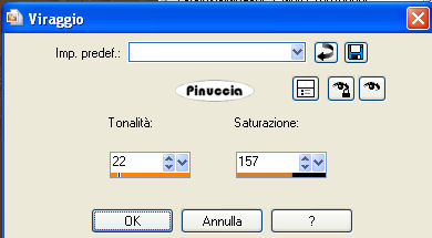 Regola>Tonalità e saturazione>Viraggio, con i settaggi precedenti.