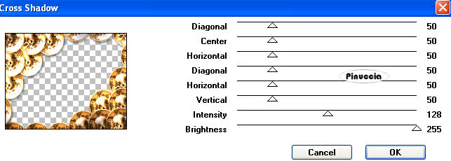 Effetti>Plugins>Graphics Plus - Cross Shadow, con i seguenti settaggi: