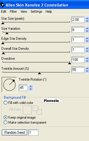 Ripeti l'Effetto Constellation, cambiando Star Size con 4,00 e cliccando su Random Seed.