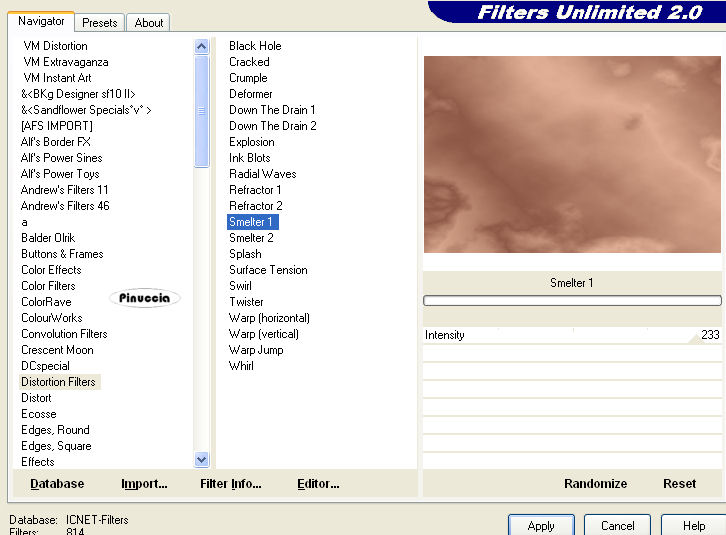 Effetti>Plugins>Filters Unlimited 2.0 - Distortion Filter - Smelter 1.