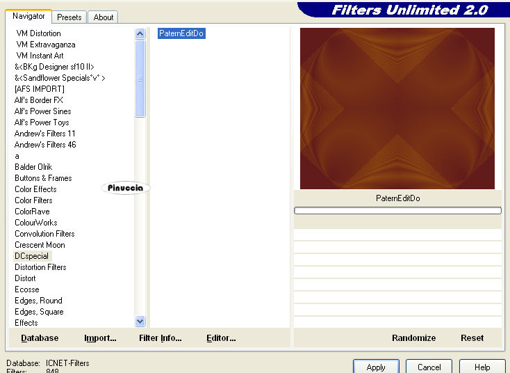 2. Effetti>Plugins>Filters Unlimited 2.0 - DC special - PaternEdit Do.