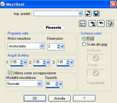 Seleziona image2.pspimage, con i seguenti settaggi: