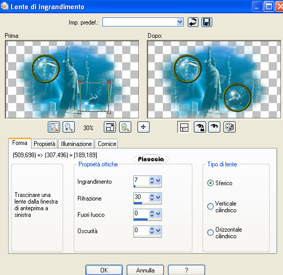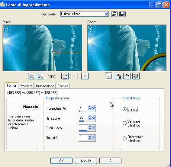 tenendo premuto il tasto sinistro del mouse, spostala nel punto in cui vuoi posizionare la lente.