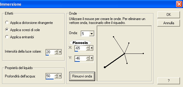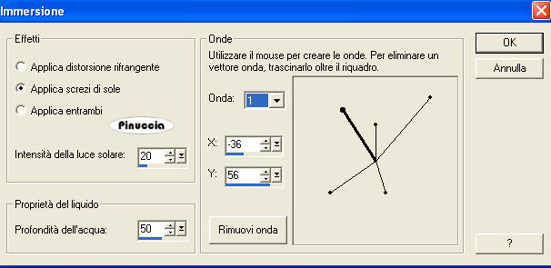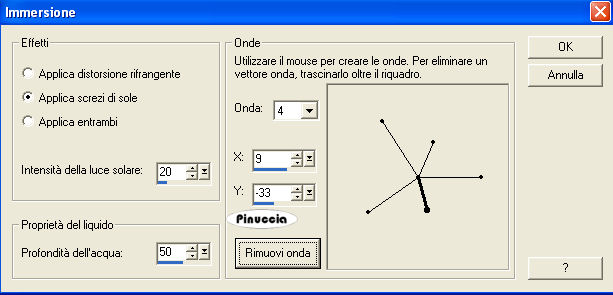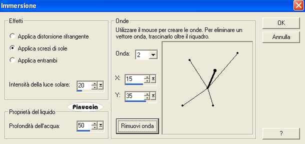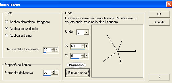 seleziona "Immersione" con i seguenti settaggi e poi clicca su Personalizza per impostare i settaggi delle onde: