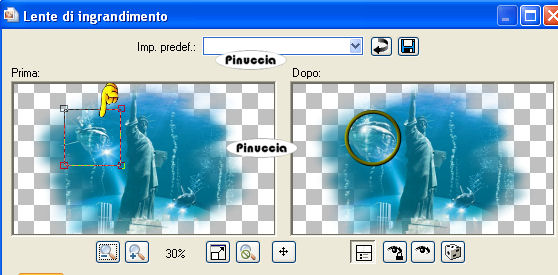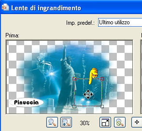 Poi diminuisci la dimensione dell'immagine di anteprima, cliccando sul segno meno, fino al 30%, e vedrai meglio l'anteprima dell'immagine con la "gabbia vettoriale".