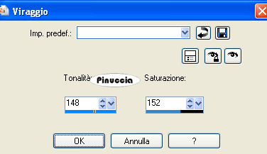 Regola>Tonalità e saturazione>Viraggio, con i settaggi precedenti.