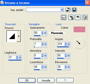 Effetti>Effetti 3D>Smusso a incasso, con i settaggi precedenti.