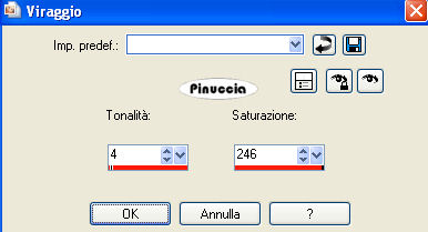 Regola>Tonalità e saturazione>Viraggio, con i settaggi precedenti.