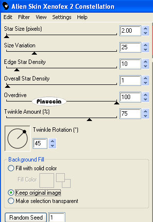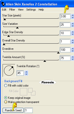 Ripeti l'Effetto Constellation portando Star Size a 3,00 e cliccando il tasto Random seed.