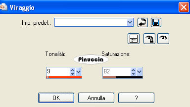 Regola>Tonalità e Saturazione>Viraggio, con i valori corrispondenti al colore chiaro.