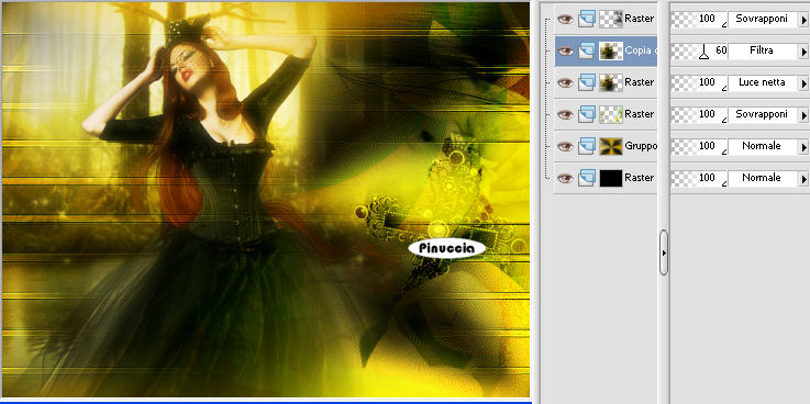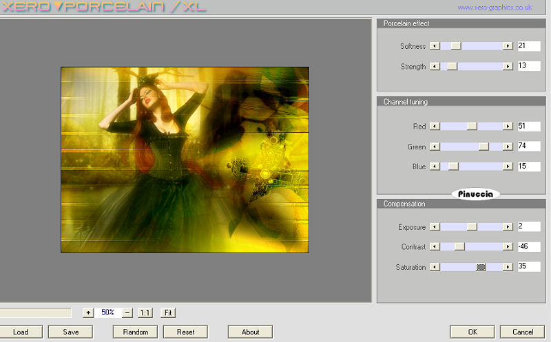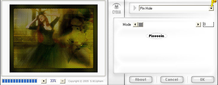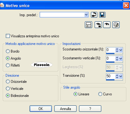 qui puoi trovare qualche risposta ai tuoi dubbi. Se l'argomento che ti interessa non è presente, ti prego di segnalarmelo. Questo tutorial è stato creato con PSP 9, ma può essere eseguito anche con le altre versioni di PSP. Per tradurlo, ho usato PSP X. Questo tutorial è una creazione di ©Christa e non può essere copiato su altri siti nè essere offerto per il download. Lo stesso vale per la mia traduzione. Il materiale viene da vari gruppi di condivisione. Il copyright appartiene ai rispettivi autori. Grazie ai creatori dei tubes che mettono a disposizione il loro lavoro in vari gruppi di condivisione. Rispetta il lavoro degli autori, non cambiare il nome del file e non cancellare il watermark. Occorrente: Materiale qui Per il materiale grazie Bibiche, Hanni e Judi. Filtri: Cybia Screenworks - Pin Hole qui Graphics Plus - Cross Shadow qui Xero XL - Bad Dream e Porcelain qui ![]() Metti il gradiente Mustard Gold-FK nella cartella Gradienti. Metti la maschera Streep nella cartella Maschere. Apri il resto del materiale in PSP. 1. Apri una nuova immagine trasparente 800 x 600 pixels. Imposta il colore di primo piano con il gradiente Mustard Gold-FK. ![]() Imposta il colore di sfondo con il nero. Riempi l'immagine trasparente con il colore nero di sfondo.Livelli>Nuovo livello raster. Riempi il livello con il gradiente.Effetti>Effetti di immagine>Motivo unico. ![]() Regola>Sfocatura>Sfocatura gaussiana - raggio 20. ![]() 2. Livelli>Carica/Salva maschera>Carica maschera da disco. Cerca e carica la maschera streep: ![]() Livelli>Unisci>Unisci gruppo. Effetti>Effetti di bordo>Aumenta di più. Effetti>Effetti di bordo>Aumenta. Apri "Frame(2407).pspimage" e vai a Modifica>Copia. Torna al tuo lavoro e vai a Modifica>Incolla come nuovo livello. Cambia la modalità di miscelatura di questo livello in Sovrapponi. 3. Apri "NS_300_0909" e vai a Modifica>Copia. Torna al tuo lavoro e vai a Modifica>Incolla come nuovo livello. Immagine>Rifletti. Sposta il tube in alto a destra, contro il bordo.Cambia la modalità di miscelatura di questo livello in Sovrapponi. Apri "aaabicheacillu006a.pspimage" e vai a Modifica>Copia. Torna al tuo lavoro e vai a Modifica>Incolla come nuovo livello. Spostalo a sinistra.Livelli>Disponi>Sposta giù. Attiva lo strumento Gomma con i seguenti settaggi:![]() cancella dalla destra del braccio del tube fino al viso, come mostrato nella schermata sotto: in basso. ![]() in alto. ![]() Cambia la modalità di miscelatura di questo livello in Luce netta. Livelli>Duplica. Cambia la modalità di miscelatura di questo livello in Filtra, e abbassa l'opacità al 60%. ![]() e vai a Modifica>Copia. Torna al tuo lavoro e vai a Modifica>Incolla come nuovo livello. Immagine>Rifletti. Sposta l'uccello in alto a destra accanto al braccio del tube.Cambia la modalità di miscelatura di questo livello in Luce diffusa. Nella paletta dei livelli sposta questo livello sotto i livelli del tube della donna. Livelli>Unisci>Unisci tutto. Effetti>Plugins>Xero - Porcelain XL. ![]() la versione XL non funziona se non viene rimossa dalle Preferenze files la versione precedente. 5. Immagine>Aggiungi bordatura, 3 pixels, simmetriche, con il colore nero. Immagine>Aggiungi bordatura, 35 pixels, simmetriche, con il colore scuro #464700. ![]() Seleziona questo bordo con la bacchetta magica ![]() Effetti>Plugins>Graphics Plus - Cross Shadow, con i settaggi standard. ![]() Effetti>Plugins>Cybia - Screenworks - Pin Hole. ![]() Selezione>Inverti. Effetti>Effetti 3D>Sfalsa ombra, con i settaggi standard. ![]() Ripeti l'Effetto Sfalsa ombra, cambiando verticale e orizzontale con -10. Selezione>Deseleziona. 6. Apri "La_confesion_by_ELENADUDINA_by judy" e vai a Modifica>Copia. Torna al tuo lavoro e vai a Modifica>Incolla come nuovo livello. Immagine>Rifletti. Sposta il tube in basso, vedi il mio esempio.Effetti>Plugins>Xero - Bad Dream XL, con i settaggi standard. ![]() Effetti>Effetti 3D>Sfalsa ombra, con il colore nero. ![]() Apri il file con il testo o, se preferisci, usa un tuo testo, e vai a Modifica>Copia. Torna al tuo lavoro e vai a Modifica>Incolla come nuovo livello. Sposta il testo dove preferisci.Aggiungi il tuo nome e/o il tuo watermark su un nuovo livello. Livelli>Unisci>Unisci tutto e salva in formato jpg. Se hai problemi o dubbi, o trovi un link non funzionante, o anche soltanto per un saluto, scrivimi. 28 Ottobre 2009 |