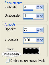 Ripeti l'Effetto Sfalsa ombra, cambiando verticale e orizzontale con -1 e il colore dell'ombra con il nero.