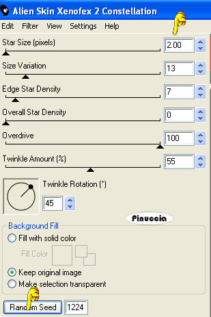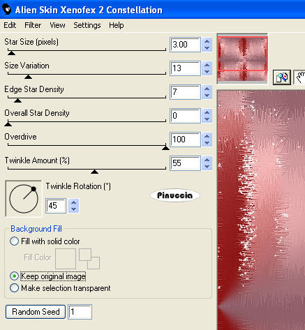 Ripeti l'Effetto Constellation cambiando Star Size con 2 e cliccando due volte su Random Seed.