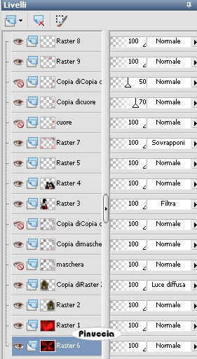 Chiudi i livelli "maschera" e "cuori" e apri i rispettivi livelli della prima copia.