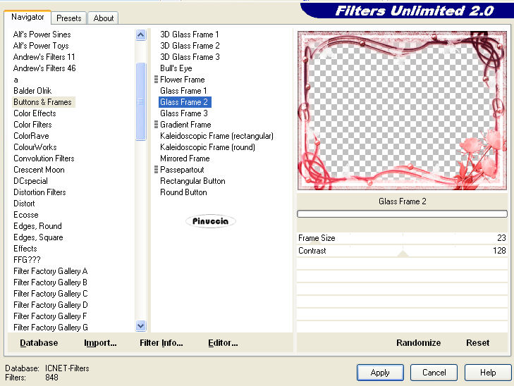 Effetti>Plugins>Filters Unlimited 2.0 - Buttons & frames - Glass Frame 2.