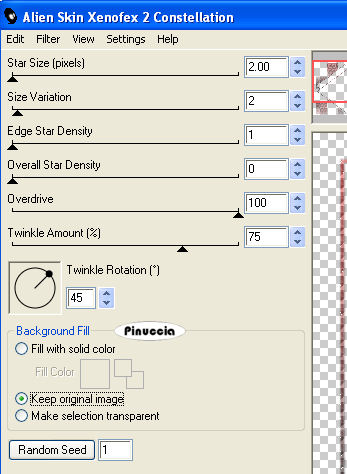 Ripeti l'Effetto Constellation, con gli stessi settaggi, cliccando una volta su Random Seed,