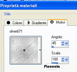Passa il colore di primo piano a Motivi e seleziona il motivo argento con i seguenti settaggi.