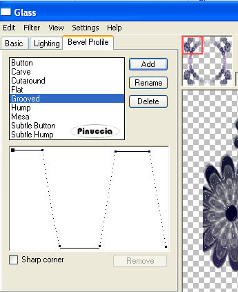 3. Effetti>Plugins>Eye Candy 4000 - Glass - con il colore #3b3caf.