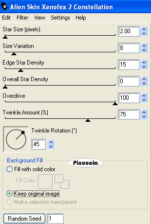 Ripeti l'Effetto Constellation con gli stessi settaggi ma cliccando due volte su Random Seed.