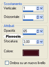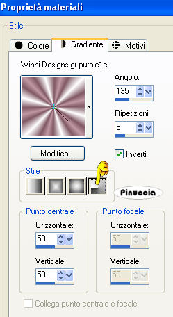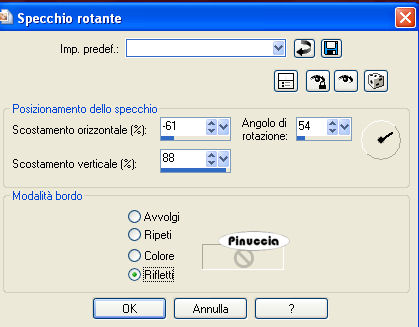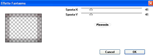 qui puoi trovare qualche risposta ai tuoi dubbi. Se l'argomento che ti interessa non è presente, ti prego di segnalarmelo. Questo tutorial è stato creato con PSP 9, ma può essere eseguito anche con le altre versioni di PSP. Per tradurlo, ho usato PSP X. Questo tutorial è una creazione di ©Christa e non può essere copiato su altri siti nè essere offerto per il download. Lo stesso vale per la mia traduzione. Il materiale viene da vari gruppi di condivisione. Il copyright appartiene ai rispettivi autori. Grazie ai creatori dei tubes che mettono a disposizione il loro lavoro in vari gruppi di condivisione. Rispetta il lavoro degli autori, non cambiare il nome del file e non cancellare il watermark. Occorrente: Materiale qui Per i tubes grazie Margit Filtri: Graphics Plus - Cross Shadow qui VM Natural - Speed qui Xero - Porcelain XL qui Italian Editors - Effetto Fantasma qui ![]() Metti il gradiente nella cartella Gradienti. Metti le maschere nella cartella Maschere. Apri il font, con il resto del materiale, e minimizza tutto. 1. Apri una nuova immagine trasparente 760 x 600 pixels. Imposta il colore di primo piano con il bianco, e il colore di sfondo con un colore scuro dal tube; il mio #410d18. Riempi l'immagine trasparente con il colore bianco.Effetti>Plugins>Graphics Plus - Cross Shadow: ![]() Effetti>Plugins>VM Natural - Speed. ![]() 2. Livelli>Nuovo livello raster. Selezione>Seleziona tutto. Apri "Temp216.psptube" e vai a Modifica>Copia. Torna al tuo lavoro e vai a Modifica>Incolla nella selezione. Regola>Tonalità e saturazione>Viraggio, con i valori corrispondenti al colore di sfondo. I miei settaggi: ![]() Effetti>Effetti di riflesso>Specchio rotante: ![]() Effetti>Plugins>FM Tile Tools - Blend Emboss, con i settaggi standard. ![]() Selezione>Deseleziona. 3. Livelli>Nuovo livello raster. Passa il colore di primo piano a Gradiente e seleziona il gradiente Winni.Designs.gr.purple1c. ![]() Riempi il livello con il gradiente.Livelli>Carica/Salva maschera>Carica maschera da disco. Cerca e carica la maschera MD-mask-44: ![]() Livelli>Unisci>Unisci gruppo. 4. Livelli>Nuovo livello raster. Riempi con il colore scuro.Livelli>Carica/Salva maschera>Carica maschera da disco. Cerca e carica la maschera mask-Yvonne-11. ![]() Livelli>Unisci>Unisci gruppo. Regola>Aggiungi/Rimuovi disturbo>Aggiungi disturbo: ![]() Effetti>Effetti 3D>Sfalsa ombra, con il colore scuro. ![]() 5. Apri il tube "MMDesignz_Cr164149.pspimage" e vai a Modifica>Copia. Torna al tuo lavoro e vai a Modifica>Incolla come nuovo livello. Immagine>Ridimensiona, all'85%, tutti i livelli non selezionato. Sposta il tube a destra.Livelli>Duplica e attiva il livello sottostante del tube originale. Regola>Sfocatura>Sfocatura gaussiana - raggio 10. ![]() Attiva il livello superiore del duplicato e vai a Livelli>Unisci>Unisci giù. 6. Livelli>Nuovo livello raster. Riempi con il colore scuro.Selezione>Seleziona tutto. Selezione>Modifica>Contrai 25 pixels. Premi sulla tastiera il tasto CANC. Selezione>Inverti. Effetti>Plugins>Italian Editors - Effetto Fantasma. ![]() Effetti>Effetti 3D>Sfalsa ombra, con il colore scuro. ![]() Ripeti l'Effetto Sfalsa ombra, cambiando verticale e orizzontale con -1. Effetti>Effetti di trama>Veneziana. ![]() Selezione>Deseleziona. Livelli>Unisci>Unisci tutto. Effetti>Plugins>Xero - Porcelain XL, con i settaggi standard. ![]() la versione XL non funziona se non viene rimossa dalle Preferenze Files la versione precedente. 7. Attiva lo strumento Testo , scegli un fonto usa il font fornito Baby Blocks, direzione verticale. Imposta il colore di primo piano con il Gradiente e il colore di sfondo con il colore scuro. Effetti>Effetti 3D>Sfalsa ombra, con il colore scuro. ![]() Ripeti l'Effetto Sfalsa ombra, cambiando verticale e orizzontale con -1. Aggiungi il tuo nome e/o il tuo watermark su un nuovo livello. Livelli>Unisci>Unisci tutto. . Immagine>Aggiungi bordatura, 2 pixels, simmetriche, con il colore scuro. Immagine>Aggiungi bordatura - 2 pixels, simmetriche, con il colore bianco. Seleziona questo bordo con la bacchetta magica ![]() e riempilo con il gradiente.Effetti>Plugins>Graphics Plus - Cross Shadow, con i settaggi precedenti. Selezione>Deseleziona. Immagina>Aggiungi bordatura, 2 pixels, simmetriche, con il colore scuro. Selezione>Seleziona tutto. Selezione>Modifica>Contrai - 6 pixels. Selezione>Inverti. Effetti>Effetti 3D>Smusso a incasso. ![]() Selezione>Deseleziona. . Hai finito. Puoi salvare in formato jpg. Se hai problemi o dubbi, o trovi un link non funzionante, o anche soltanto per un saluto, scrivimi 28 Ottobre 2009 |