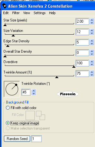 Ripeti l'Effetto Constellation, con gli stessi settaggi, ma cliccando una volta su Random Seed.