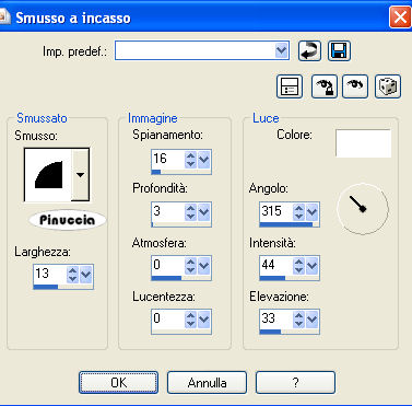 Effetti>Effetti 3D>Smusso a incasso, con i settaggi precedenti.