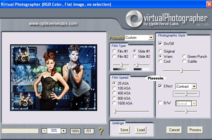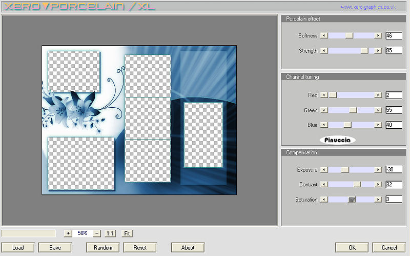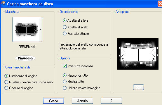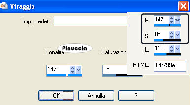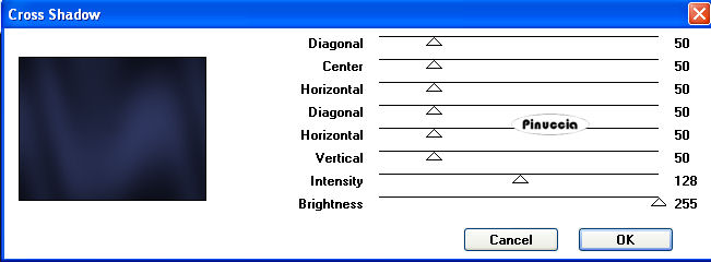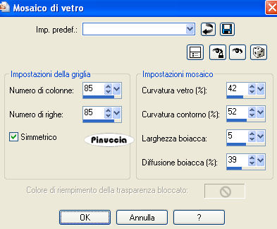 qui puoi trovare qualche risposta ai tuoi dubbi. Se l'argomento che ti interessa non è presente, ti prego di segnalarmelo. Questo tutorial è stato creato con PSP 9, ma può essere eseguito anche con le altre versioni di PSP. Per tradurlo, ho usato PSP X. Questo tutorial è una creazione di ©Christa e non può essere copiato su altri siti nè essere offerto per il download. Lo stesso vale per la mia traduzione. Il materiale viene da vari gruppi di condivisione. Il copyright appartiene ai rispettivi autori. Grazie ai creatori dei tubes che mettono a disposizione il loro lavoro in vari gruppi di condivisione. Occorrente: Materiale qui Per i tubes grazie Devilinside e LuzCristina. Rispetta il lavoro degli autori, non cambiare il nome del file e non cancellare il watermark. Filtri: Graphics Plus - Cross Shadow qui OptikVerve Lab - virtualPhotographer qui Xero - Porcelain XL qui ![]() Metti la maschera nella cartella Maschere e apri il resto del materiale in PSP. 1. Apri una nuova immagine trasparente 850 x 650 pixels. Imposta il colore di primo piano con #4f799e, e il colore di sfondo con #111423. Riempi l'immagine trasparente con il colore di sfondo.Effetti>Plugins>Graphics Plus - Cross Shadow: ![]() Effetti>Effetti di trama>Mosaico di vetro. ![]() 2. Livelli>Nuovo livello raster. Riempi con il colore di primo piano.Apri "1861-luzCristina.pspimage" e vai a Modifica>Copia. Torna al tuo lavoro e vai a Modifica>Incolla come nuovo livello. Posiziona il tube al centro.Cambia la modalità di miscelatura di questo livello in Luce netta. Livelli>Unisci>Unisci giù. Livelli>Carica/Salva maschera>Carica maschera da disco. Cerca e carica la maschera 05PSPMask: ![]() Livelli>Unisci>Unisci gruppo. Effetti>Effetti 3D>sfalsa ombra, con i seguenti settaggi, colore nero. ![]() 3. Apri "Devilinside_Exclusiv_58_2009.pspimage" e vai a Modifica>Copia. Torna al tuo lavoro e vai a Modifica>Incolla come nuovo livello. Immagine>Ridimensiona, al 70%, tutti i livelli non selezionato. Sposta il tube a destra.Regola>Messa a fuoco>Metti a fuoco. Effetti>Effetti 3D>Sfalsa ombra, con i settaggi precedenti. Ripeti l'Effetto Sfalsa ombra, invertendo i valori verticale e orizzontale. ![]() Apri "Devilsinside_Exclusiv_57_2009.pspimage" e vai a Modifica>Copia. Torna al tuo lavoro e vai a Modifica>Incolla come nuovo livello. Immagine>Ridimensiona, al 70%, tutti i livelli non selezionato. Sposta il tube un po' più in basso rispetto al precedente.![]() Regola>Messa a fuoco>Metti a fuoco. Effetti>Effetti 3D>sfalsa ombra, con i settaggi precedenti, compresa la ripetizione con i segni invertiti. 4. Livelli>Nuovo livello raster. Livelli>Disponi>Sposta giù. selezione>Seleziona tutto. Apri "Frame(367).png e vai a Modifica>Copia. Torna al tuo lavoro e vai a Modifica>Incolla nella selezione. Selezione>Deseleziona. Regola>Tonalità e saturazione>Viraggio, con i valori corrispondenti al colore di primo piano. ![]() Cambia la modalità di miscelatura di questo livello in Luce netta, e abbassa l'opacità al 50%. ![]() Effetti>Plugins>Xero - Porcelain XL: ![]() Selezione>Seleziona tutto. Selezione>Modifica>Contrai - 5 pixels. Effetti>Effetti 3D>Scalpello, con il colore di primo piano. ![]() Selezione>Deseleziona. Livelli>Unisci>Unisci tutto. 5. Livelli>Duplica. Immagine>Ridimensiona, al 25%, tutti i livelli non selezionato. Immagine>Rifletti. Posiziona l'immagine in alto a sinistra, vedi il mio esempio.Effetti>Effetti 3D>sfalsa ombra, con i settaggi precedenti. Livelli>Duplica. Immagine>Rifletti. Sposta il duplicato nell'angolo in basso a sinistra.Vedi il mio esempio. ![]() Apri il tube con le farfalle "Butterflies Black". Una farfalla è già selezionata: vai a Modifica>Copia. Torna al tuo lavoro e vai a Modifica>Incolla come nuovo livello. Posiziona la farfalla dove preferisci.Regola>Tonalità e saturazione>Viraggio, con i settaggi precedenti. 6. Livelli>Nuovo livello raster. Selezione>Seleziona tutto. Selezione>Modifica>Contrai -5 pixels. Apri "ecken.pspimage" e vai a Modifica>Copia. Torna al tuo lavoro e vai a Modifica>Incolla nella selezione. Selezione>Deseleziona. Regola>Tonalità e saturazione>Viraggio, con i settaggi precedenti. Effetti>Effetti 3D>sfalsa ombra, con i seguenti settaggi, colore nero. ![]() Regola>Messa a fuoco>Metti a fuoco. Apri il file con il testo (o, se preferisci, usa un tuo testo) e vai a Modifica>Copia. Torna al tuo lavoro e vai a Modifica>Incolla come nuovo livello. Posiziona correttamente il testo.Aggiungi il tuo nome e/o il tuo watermark su un nuovo livello. Livelli>Unisci>Unisci tutto. 6. Effetti>Plugins>OptikVerve Lab - Virtual Photographer: ![]() Hai finito. Salva in formato jpg. ![]() Se hai problemi o dubbi, o trovi un link non funzionante, o anche soltanto per un saluto, scrivimi. 11 Settembre 2009 |