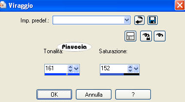 Regola>Tonalità e Saturazione>Viraggio, con i settaggi precedenti.