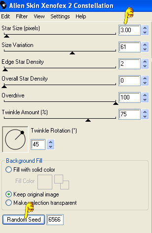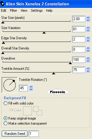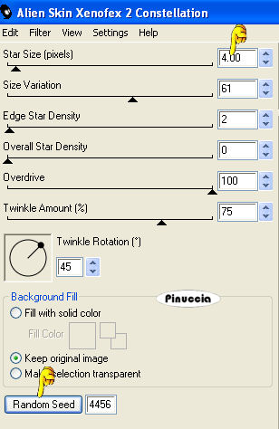 Ripeti l'Effetto Constellation, con Star Size a 4,00 e clicca su Random Seed.