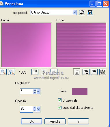 Effetti>Effetti di trama>Veneziana, con il colore di sfondo.