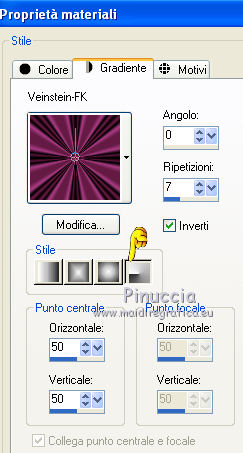 Passa il colore di primo piano a Gradiente - seleziona il gradiente Veinstein-FK (o un altro, se preferisci) con i seguenti settaggi.