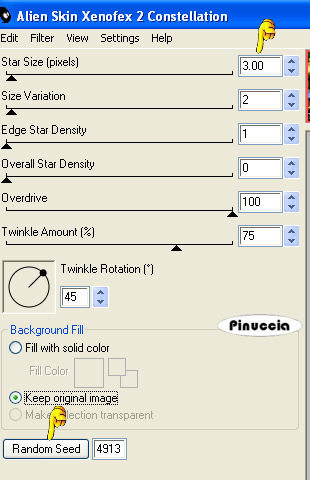 Ripeti l'Effetto Constellation portando Star size a 3 e cliccando una volta su Random Seed.