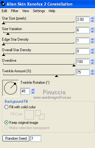 Ripeti l'Effetto Constellation con gli stessi settaggi, ma cliccando 2 volte su Random Seed.