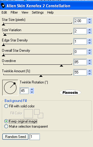Ripeti l'Effetto Constellation, con gli stessi settaggi, ma cliccando una volta su Random Seed.