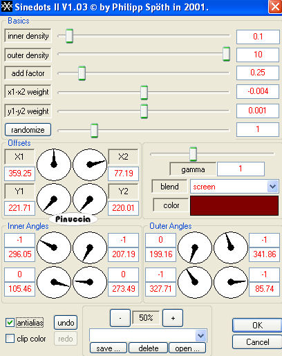 Effetti>Plugins>Dragonfly - Sinedots II, con il colore #800000.