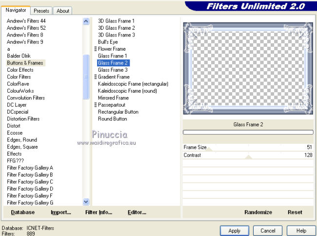 Effetti>Plugins>Filters Unlimited 2.0 - Buttons & Frames - Glass Frame 2.