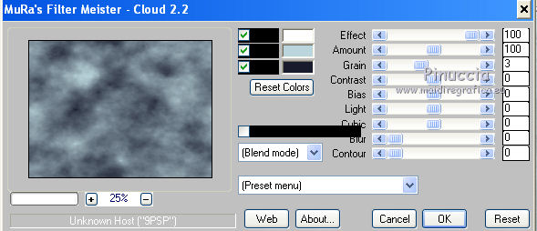 Premere successivamente il tasto Reset serve per cambiare casualmente (ragione per la quale il tuo risultato non potrà essere uguale al mio esempio, l'aspetto delle nuvole.