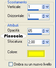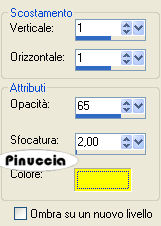 Effetti>Effetti 3D>sfalsa ombra, con i seguenti settaggi, colore #ffff00.