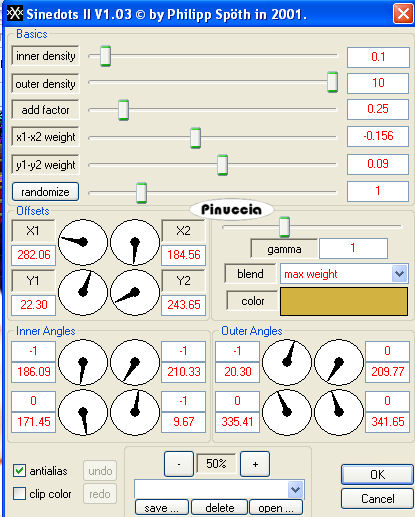 Effetti>Plugins>Dragonfly - Sinedots II, con i seguenti settaggi, con un colore scelto dal tube: