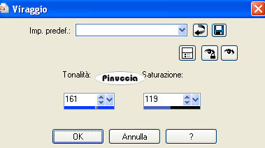 Regola>Tonalità e Saturazione>Viraggio, con i settaggi precedenti.