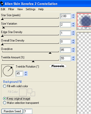 Ripeti l'Effetto Constellation cliccando due volte su Random Seed.