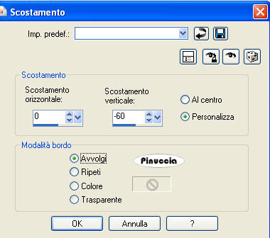 Effetti>Effetti di immagine>Scostamento, con i seguenti settaggi (che saranno gli stessi per il resto del tutorial).