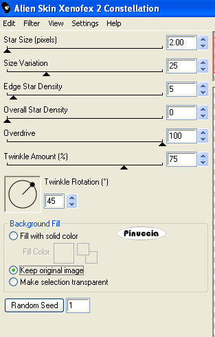 Ripeti l'Effetto Constellation con gli stessi settaggi, ma cliccando una volta su Random Seed.