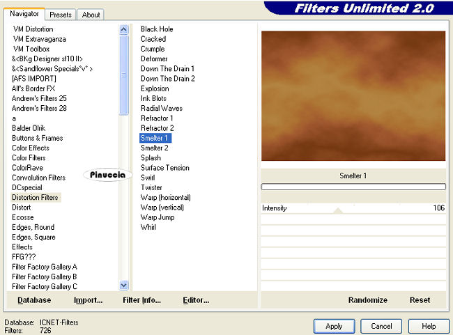 Effetti>Plugins>Filter Unlimited - Distortion Filters - Smelter 1: