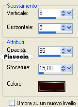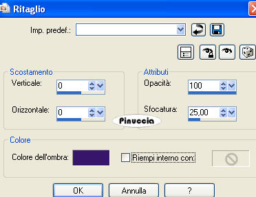 Effetti>Effetti 3D>Sfalsa ombra, con gli ultimi settaggi utilizzati.