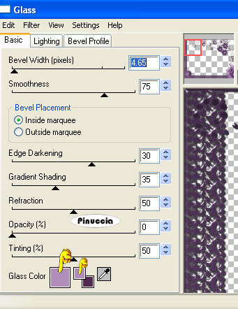 Effetti>Plugins>Eye Candy 4000 - Glass, con il colore di primo piano.