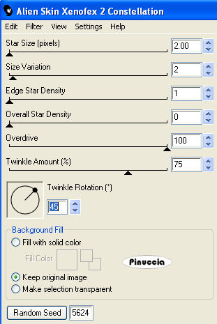 Ripeti l'Effetto Constellation, riportando Star Size a 2,00 e cliccando su Random Seed.